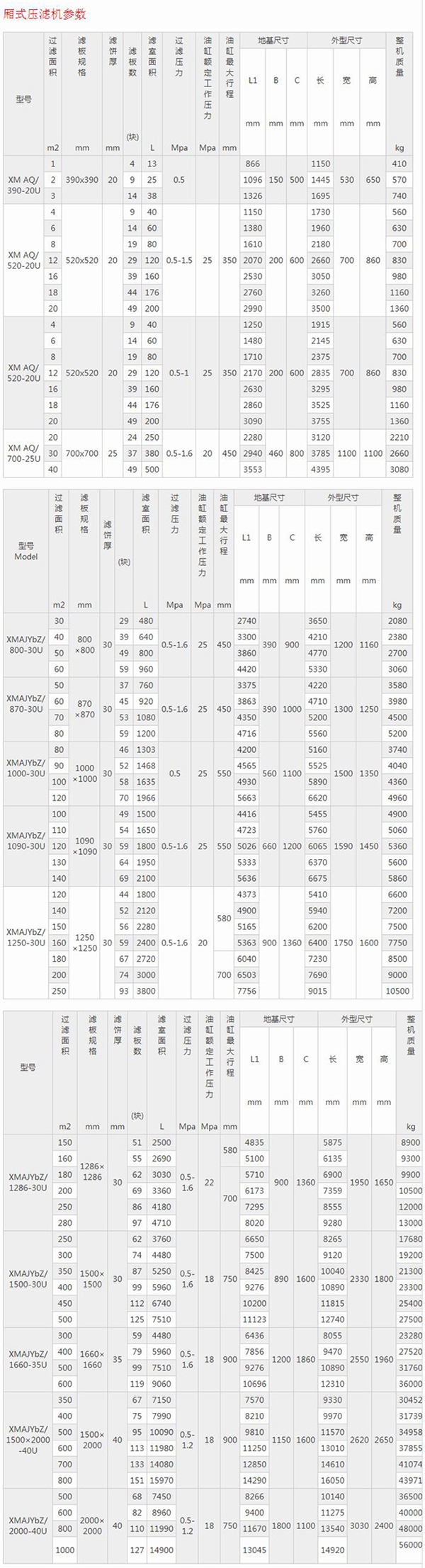厢式压滤机,统称为板框压滤机,是由两块相同的厢式滤板相合而成,两块滤板之间在压紧时形成一个滤室,用于存放被滤布隔离的颗粒状物体,进料孔放在滤板中央,一般用于颗粒状物体比较多的物料,比如污水处理,选矿,洗煤等行业。 厢式压滤机特点: 不宜造成各滤室偏压,从而滤板不宜被损坏,过滤速度快,卸渣方便,过滤压力大,滤饼含液量低,能承受过滤压力最高可大3.0Mpa,容易实现自动拉板卸料,适应范围更广,可以制造最大的压滤机